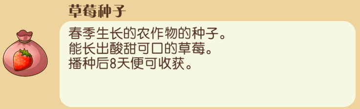 游戏中,种子有适宜种植季节与不同的生长周期,耕种后多天收获一轮植物能让你不在每天疲于翻地播种,只需记得按时给作物浇水,防治作物枯萎;