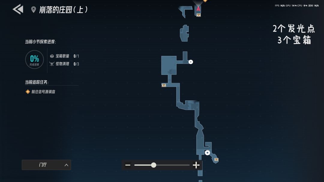 白色的圈是发光点,左上角是章节,左下角可以看地图位置。