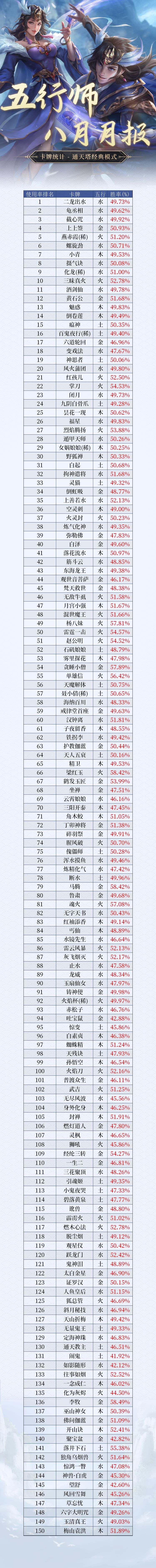 《五行师》2025年8月月报