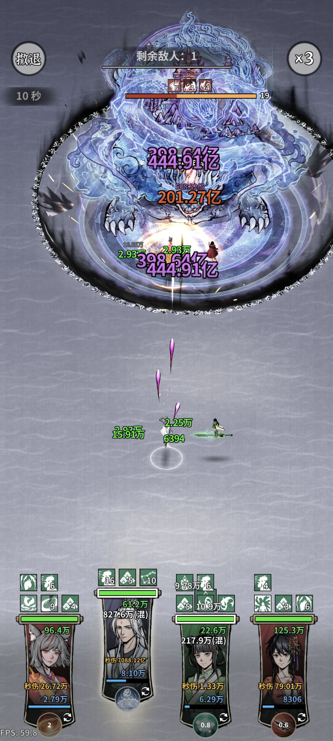------至于组队如何撘配的话,我个人是师傅(主c)+狐狸(最高减抗50%)+火枪(30%cd)+木奶(回血+回灵+解控,常驻技能回血可达200w+,解天雷控制)。师傅没有带枯荣功,因为我实测后发现即使在我的旧水剑带了6本debuff功法,最多能上8个debuff的情况下,把枯荣功换成盘龙决实战秒伤也变化不大。而旧水剑相较于木奶唯一的优势就是旧水剑能上debuff,在不带枯荣功的情况下,木奶自身的生存和辅助能力又比旧水剑优秀太多,自然也就选择带木奶了。