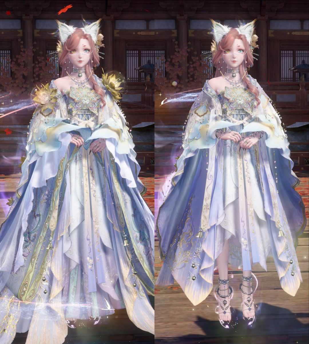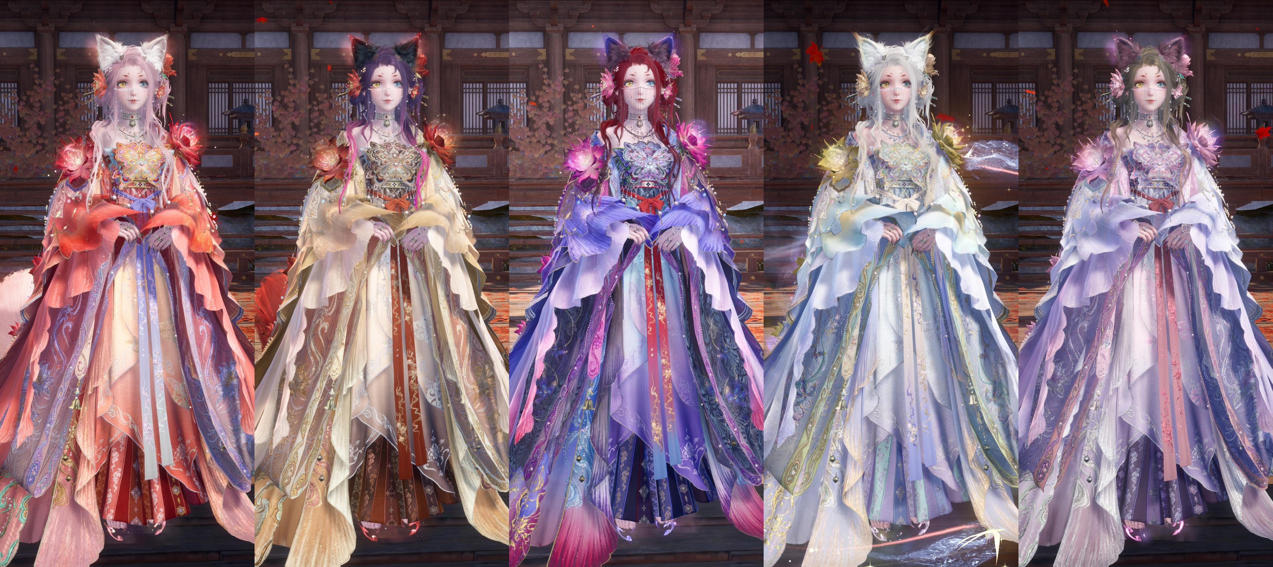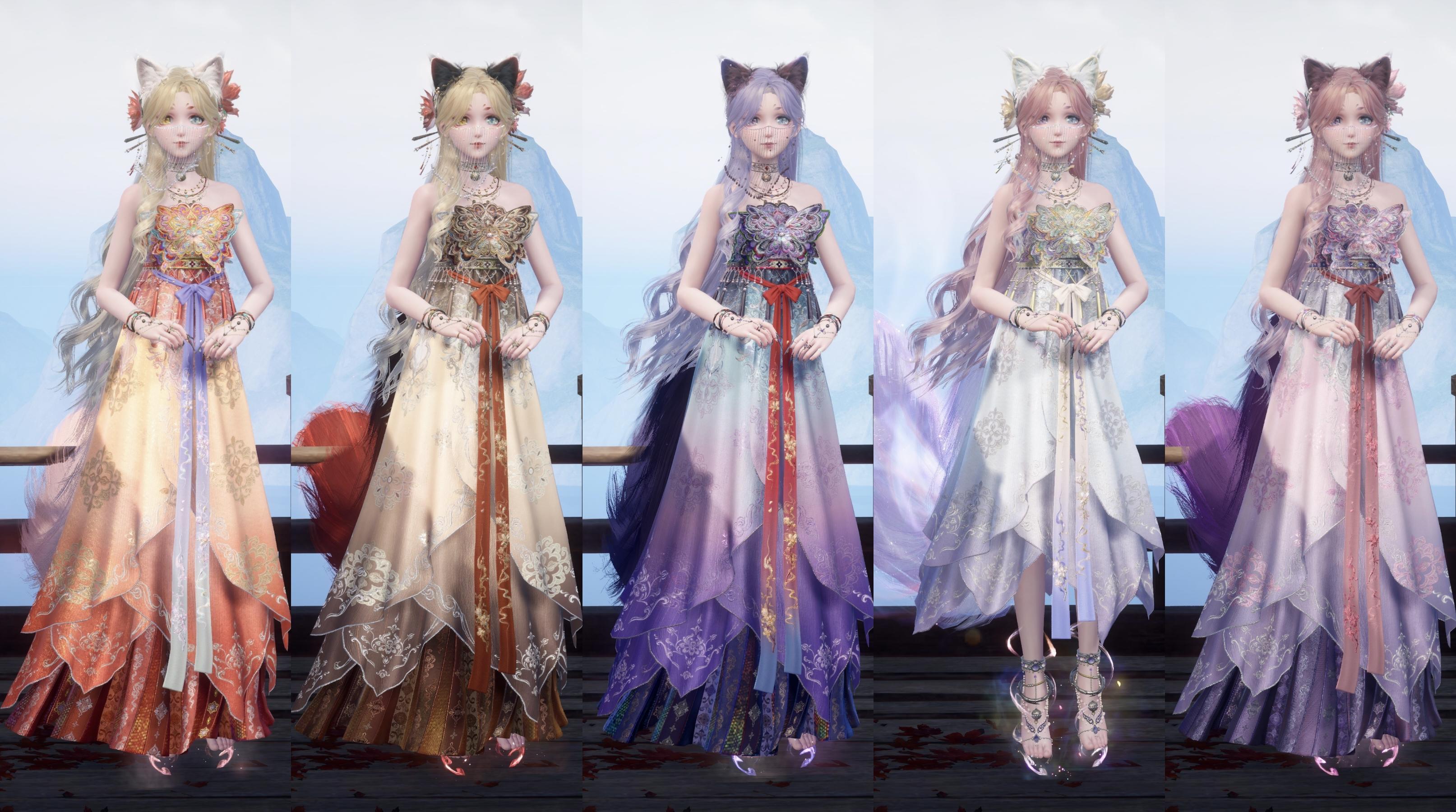 短款去掉肩膀上莲花并且外套裙子变短从而让整体变得更加轻盈,大世界跑图使用这件非常不错的。