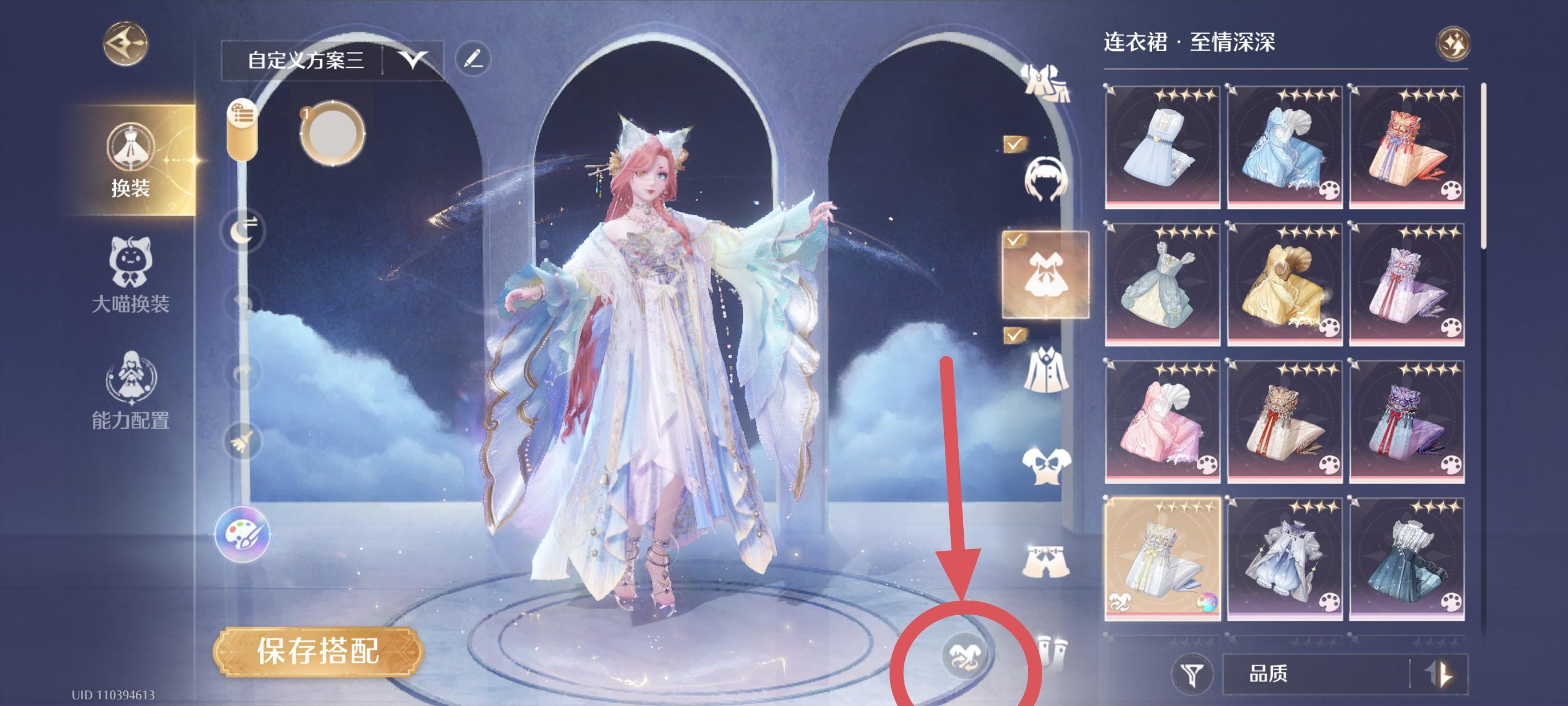 应该有小伙伴好奇共鸣详情衣服上这个标记是干嘛的吧,其实是切换长短款的按钮,在换装页面自己手动切换,切记只有在外套裙子那里按钮才会显示欧。
