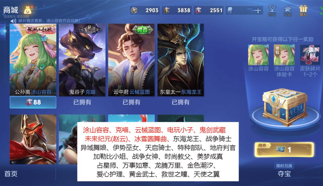 碎片商城备好272碎片,涂山容容是首选,鬼谷子云中君也别错过