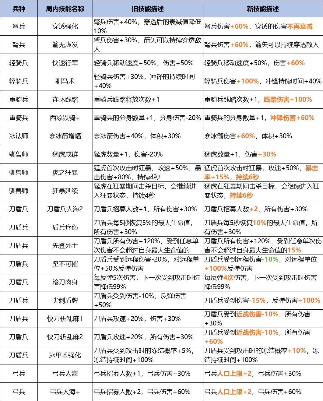 局内技能调整优化一览