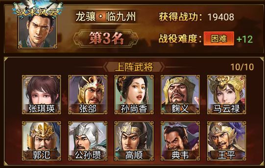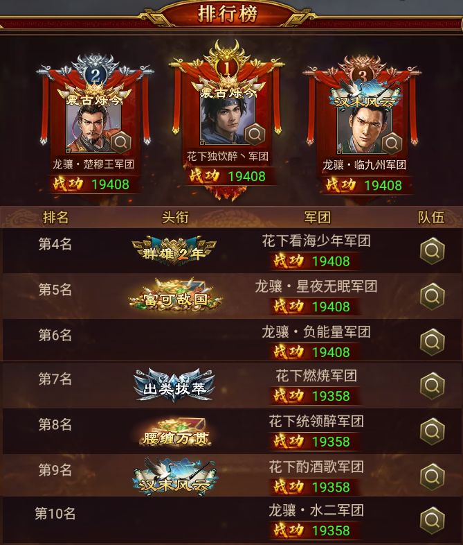 同样以 19408 的优秀战功拿下第三的是 龙骧・临九州 军团!成功攻克战役困难12,恭喜!