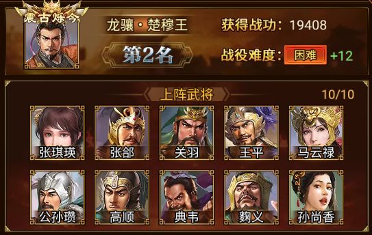 龙骧・楚穆王 军团以 19408 的优异战功突破困难12战役难关,稳居本期第二,实力同样惊艳,恭喜!