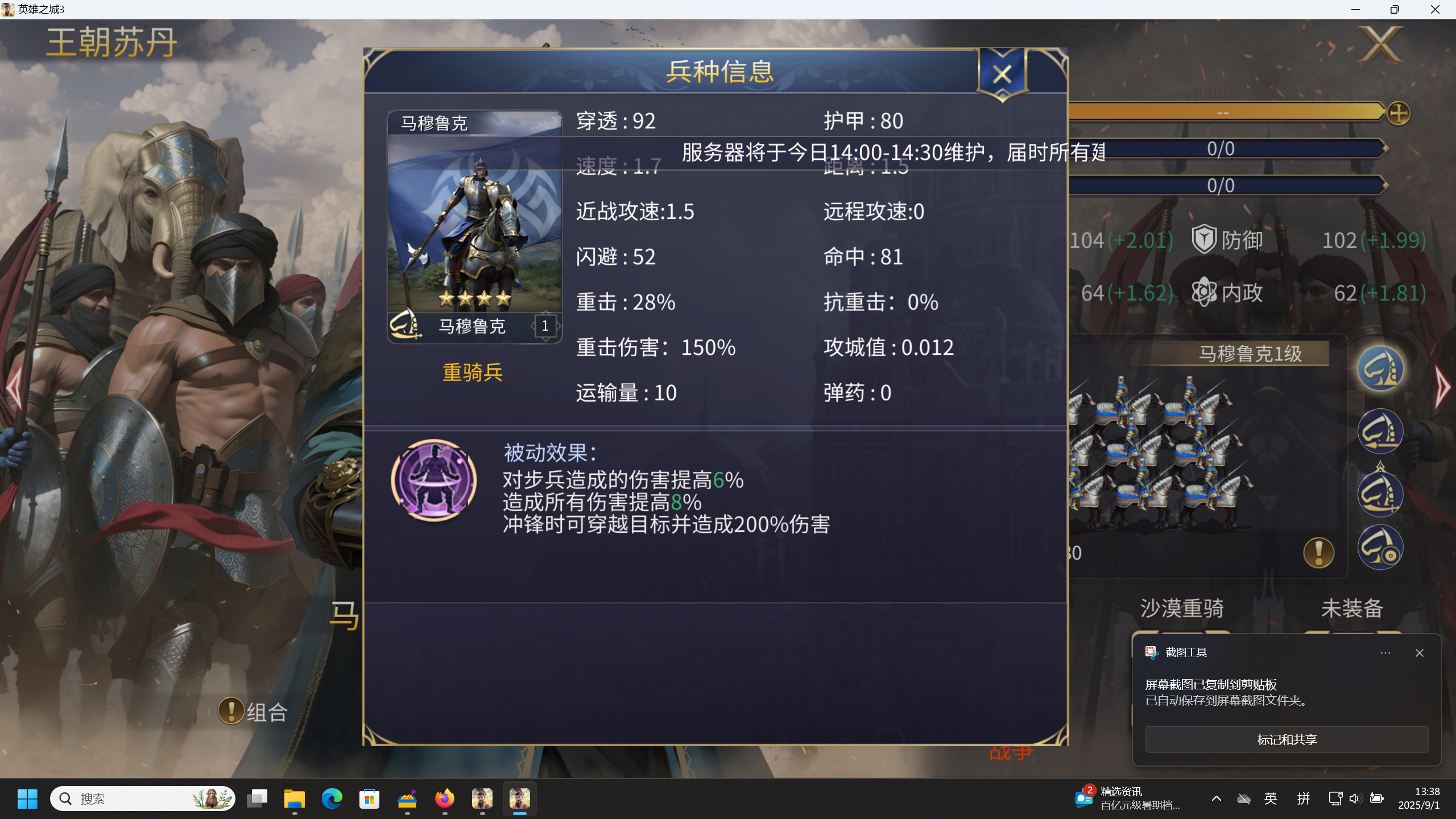 马哈茂德作为标准的重骑兵英雄,自带三个兵种都是重骑兵