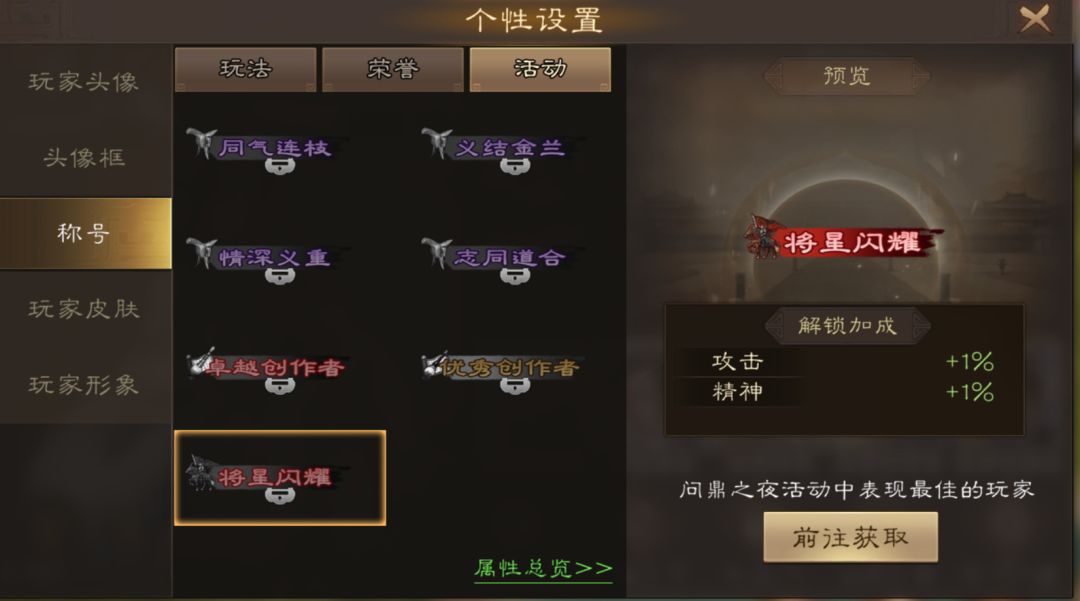 均可获得限时【将星闪耀】专属称号(时效 1 个月,如获奖玩家重复获取,称号时效将会叠加)。
