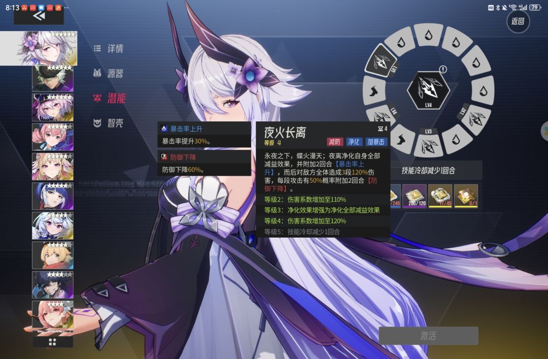 2.角色的潜能:伊瑟中角色的潜能分为两部分。一部分就是大家所熟知的命座,命座会给角色带来基础属性的提升(攻击,防御,生命)以及其他方面(及暴击率,暴击效果,效果命中,效果抵抗)的提升。其中尤为重要的“速度”无法通过命座提升,这一定程度上维系了游戏的平衡。当然满命会提升角色的“伤害双向”,及造成伤害提升10%,受到伤害减少10%,只能说佬们应得的。