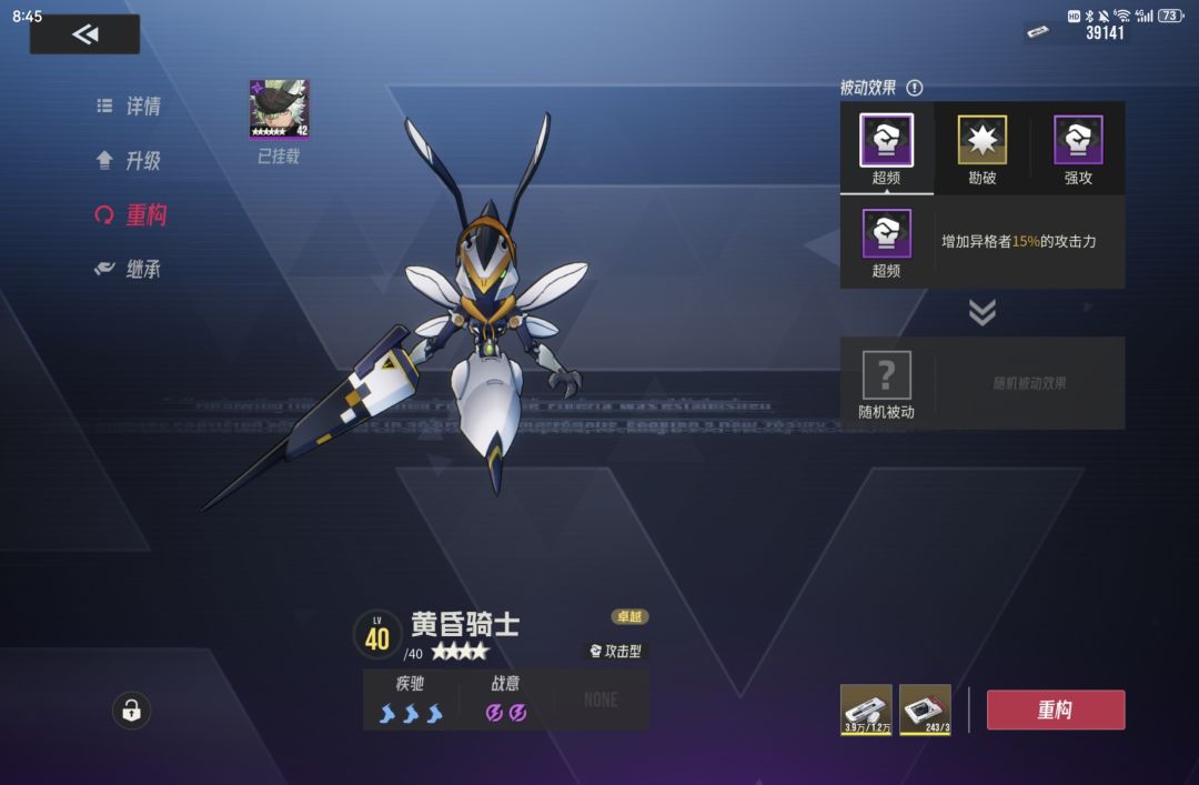 智壳:智壳初始为一星,高品质的智壳最多为四星,智壳升级需要消耗训练数据,升星需要消耗训练数据和n个同名智壳(数量依次为1.2.3)。满星后可以觉醒,同样需要消耗训练数据和同名智壳。智壳拥有一个技能,觉醒可以提升技能效果。此外,智壳可以给角色带来一定的基础属性提升,智壳升星会觉醒被动效果,被动效果也可以给角色带来属性提升,被动效果的重构需要消耗训练数据和重构芯片,重构芯片只能通过回收智壳获取。