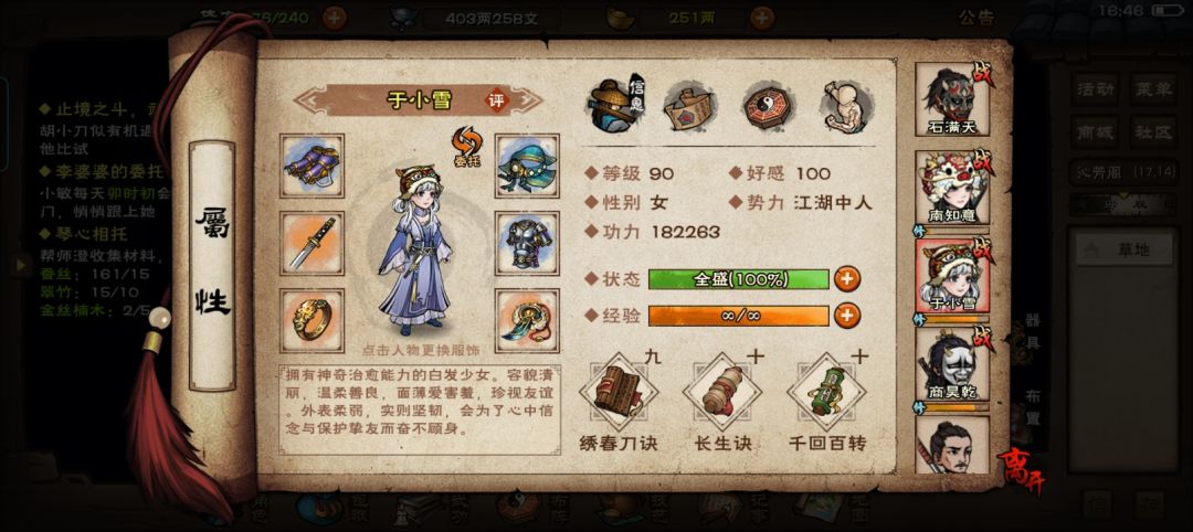 3.于小雪:副c+奶,目前绣春+长生(马上把万里神行给她用)