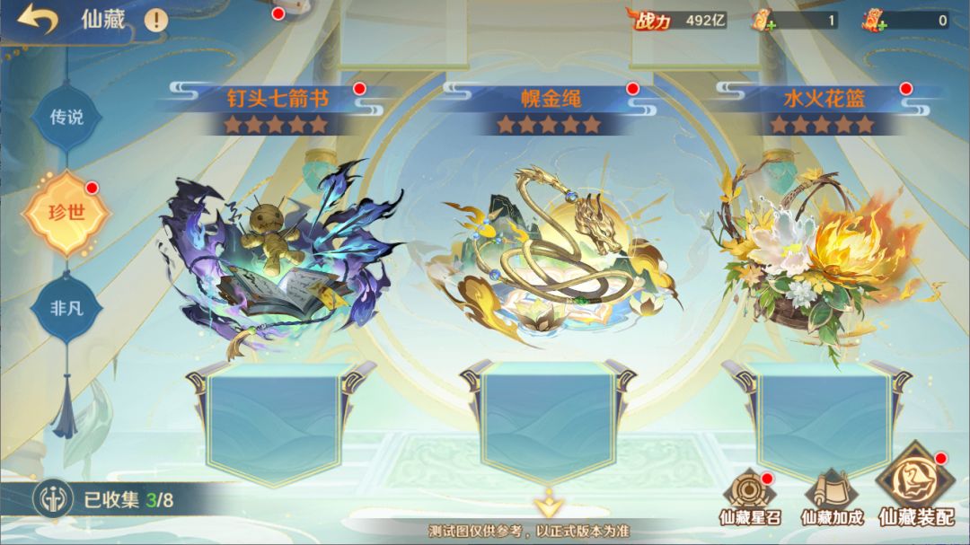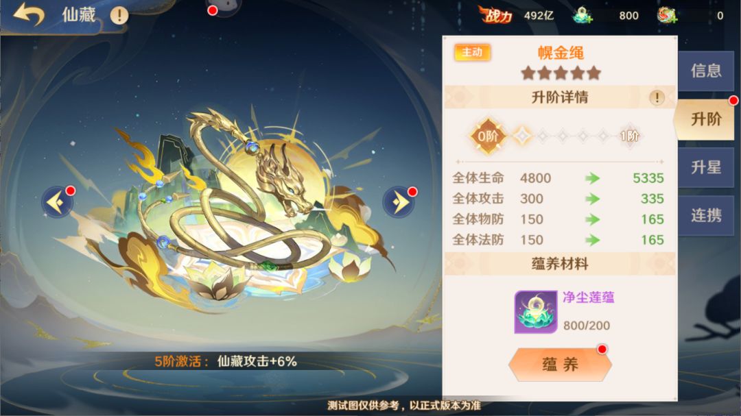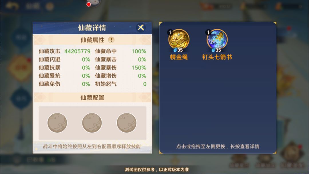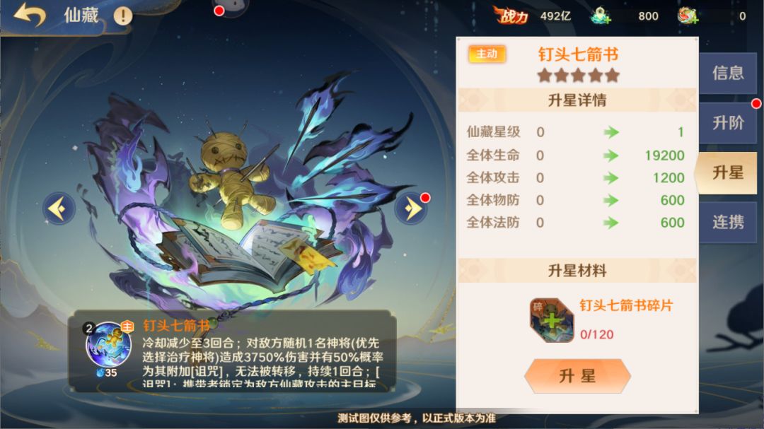 此外,守护使还可在仙藏升星界面中消耗同名仙藏碎片,提升仙藏为全体上阵神将赋予的基础属性加成效果,并升级仙藏技能。同时,每个仙藏都拥有一组连携仙藏,当该组连携仙藏均达到指定星级后,该仙藏会获得额外的仙藏连携特性。