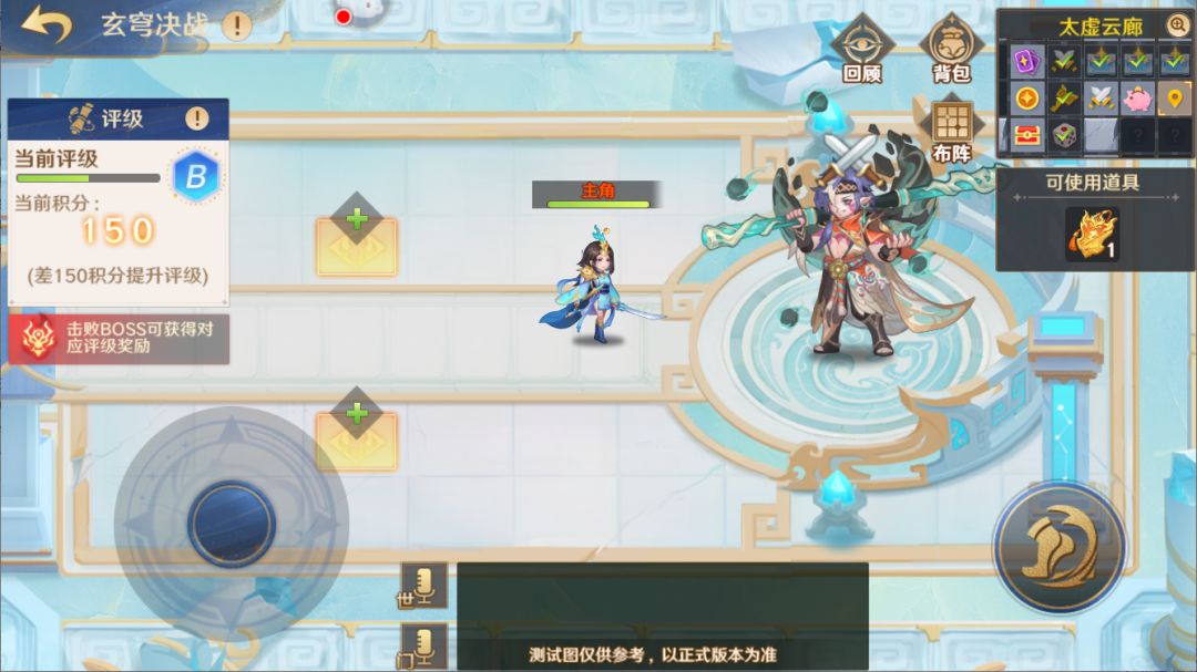 小提示:在太虚云廊中获得的所有奖励都会临时存放在奖励背包中,将在战胜BOSS后统一发放,中途放弃挑战或挑战失败将无法获得奖励。守护使可点击右上角的[背包]按钮查看奖励。