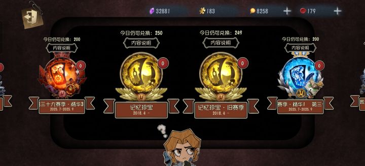 注(觉得字长的可以看③):这里不得不提一下第五人格的珍宝种类:有旧珍宝、排位珍宝、赛季珍宝、深渊珍宝、联动珍宝,旧珍宝的奖池为赛季珍宝结束后的紫皮和排位珍宝中的金挂(60抽紫皮保底,250抽金挂保底,首次抽中前可以自选保底,一年中大概会刷新两次自选保底)、排位珍宝的奖池为当赛季的排位挂件(就算是不同的珍宝保底次数也会累计,同样是60抽保底紫挂,250抽保底金挂,排位珍宝是唯一一个不用不能用灯泡抽的,每天的三局排位可以获得一个,周六,周天的五排每天打三局可以额外获得一个)、赛季珍宝奖池为当前赛季皮肤(分为珍宝1蓝.2紫.3红,赛季结束后紫皮会进入旧珍宝金皮将绝版,60抽保底紫皮,2抽保底金皮)、联动珍宝上限会替代本该在同时期上限的珍宝(保底为60抽紫皮250抽金皮,返场会继承保底数,一般联动珍宝在线会时常会小于正常珍宝,在联动珍宝结束后,推理之径的珍宝会换成123顺序的下一个珍宝,所以联动珍宝一般不在珍宝3号位)、深渊珍宝为每年过年的珍宝(60抽保底紫皮250抽保底金皮,首次上限会送较多抽数,大部分都会在每年过年返厂,返场只能拿灯泡抽,且返场会继承抽数)。还有一点就深渊珍宝和联动珍宝中的紫皮为3个,排位珍宝中的紫皮为两个