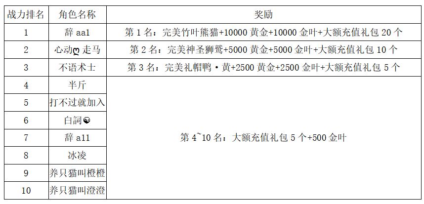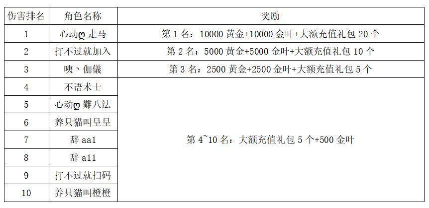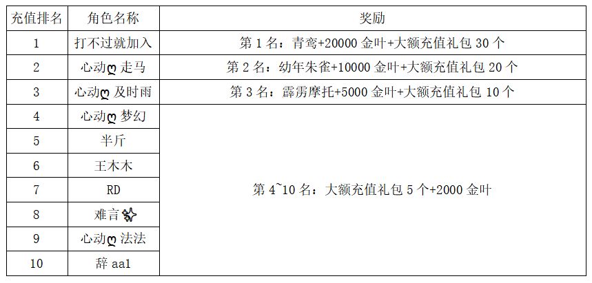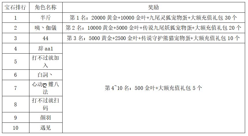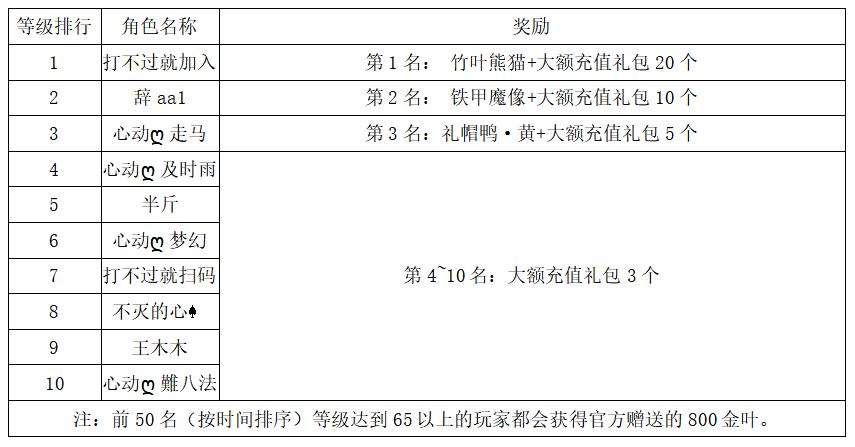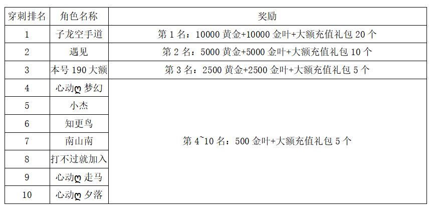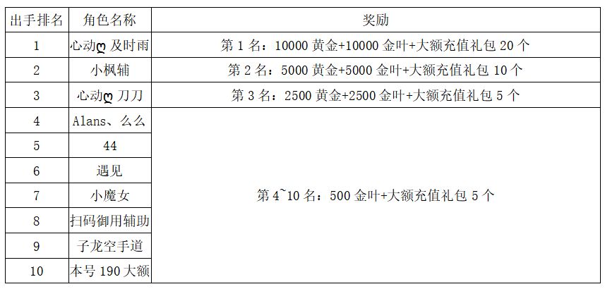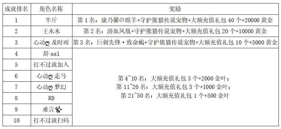 注:以上活动排名均以服务器时间为准。新区排行榜活动如发现存在违反游戏相关规定使用游戏外的辅助工具进行作弊将取消获奖资格。