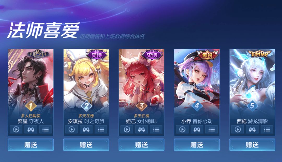在法师喜爱的榜单中,虽然诸葛亮有无双皮肤天机白泽,但因为是抽奖获取,没有统计销量,因此仅凭上场率显然没办法进入到前5的榜单中,现在占据第一的是弈星守夜人。