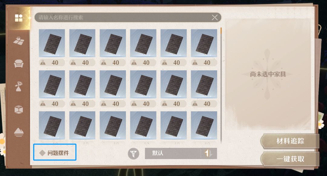 ⑤L已摆放列表:打开看一眼就会想死的界面。平时不用看,但是当保存失败的时候,要进入到L里,点击问题摆件,查看出错的物品以及错误原因。