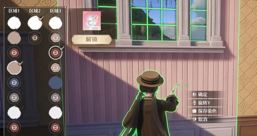 买了一块调色盘后,同一个图纸,不管做多少件都可以用这块调色盘染色,无需重复购买。但是,这游戏里有很多类似性质的结构,比如墙上带窗户、墙上带门。虽然玩家会觉得这都是墙,但因为它们是用不同的图纸做的,想把它们染成一样的颜色,得分别为每张图纸购买调色盘。