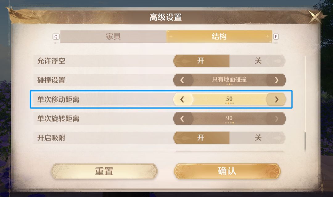除此之外在结构的高级设置里还有个功能是吸附。吸附可以让玩家在摆放结构时自动无缝拼接。只要靠近另一个结构的边缘,手里的结构就会主动贴上去。