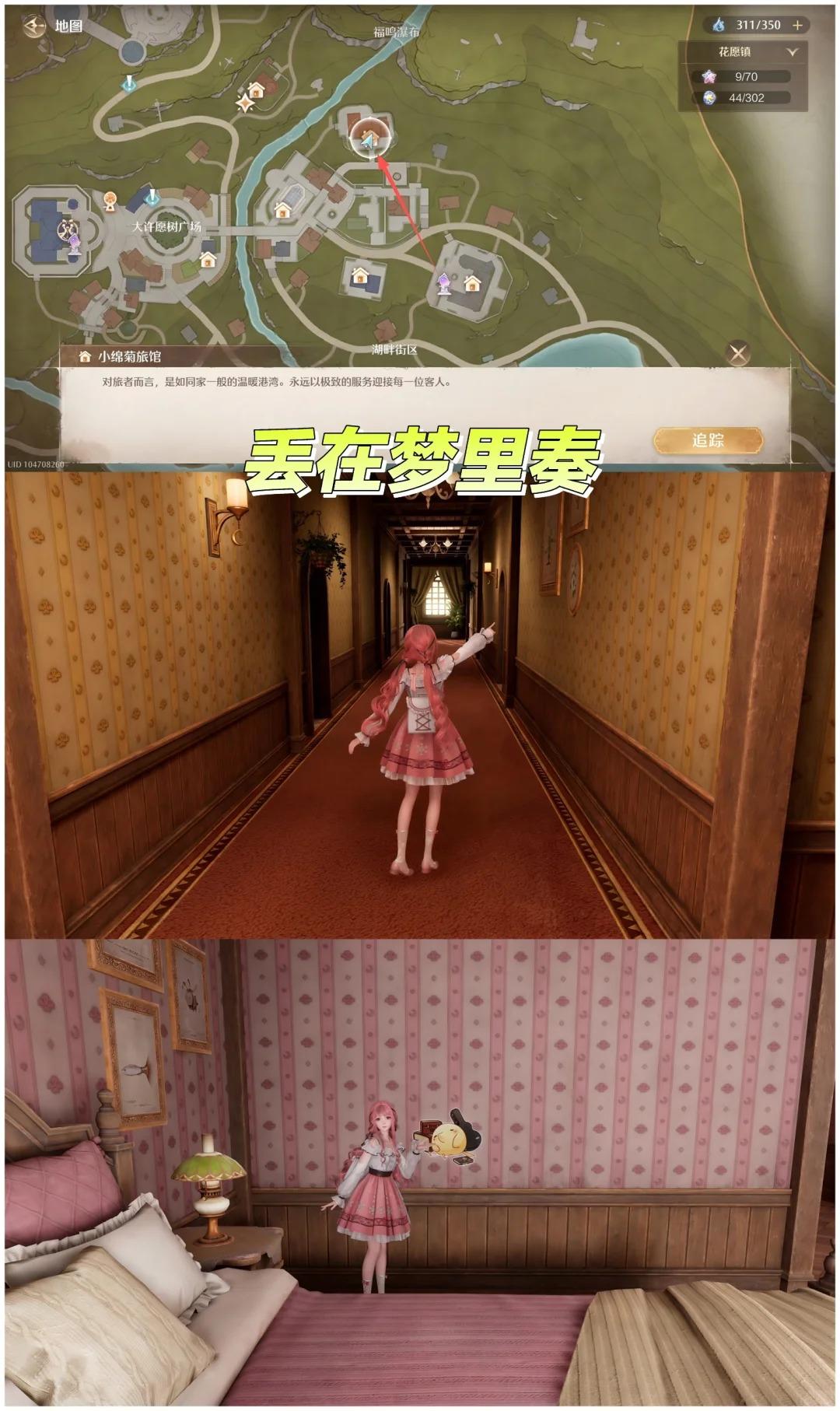 传送到锚点【镇长宅邸前】,史丢丢在南方舞台旁的告示牌上;
