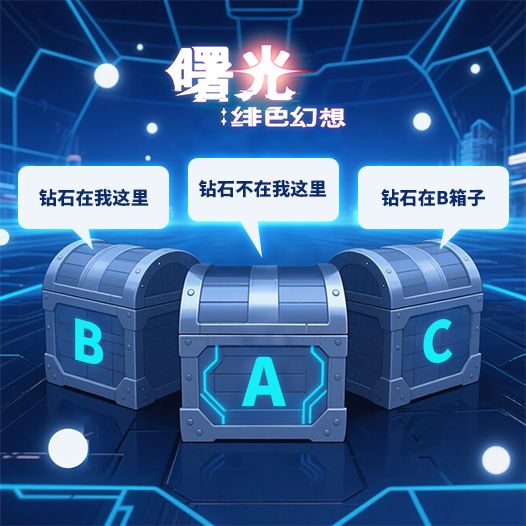前方谜题来袭!现在有三个宝箱(A、B、C),每个宝箱都附带一条提示。钻石就藏在其中一个宝箱里,只有一条提示说的是真话,其余两个都是假的。请根据提示进行推理,找出真正藏有钻石的宝箱吧!参与活动即有机会赢取游戏内福利!