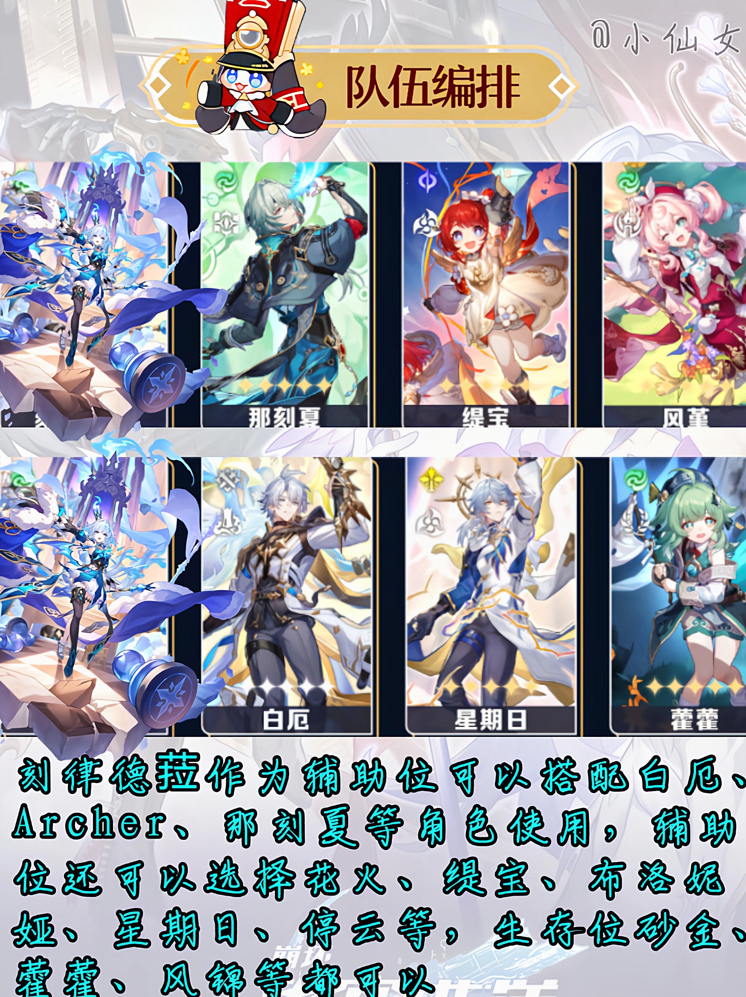 刻律德菈 是一位能够复制队友技能的风属性辅助角色,特别适合与依赖战技输出的主输出角色搭配。她不仅拥有全面的增益效果,还能显著提升主输出角色的爆发伤害和整体输出能力。她的增益主要通过提升攻击力来实现,因此通常不建议与以生命值为核心的输出角色搭配,但在特定情况下,双战技的组合可能会带来意想不到的效果,建议根据实际情况灵活调整。如果拥有白厄或者那刻夏、Archer等输出角色建议抽一个,提高输出角色伤害,00即完全体。