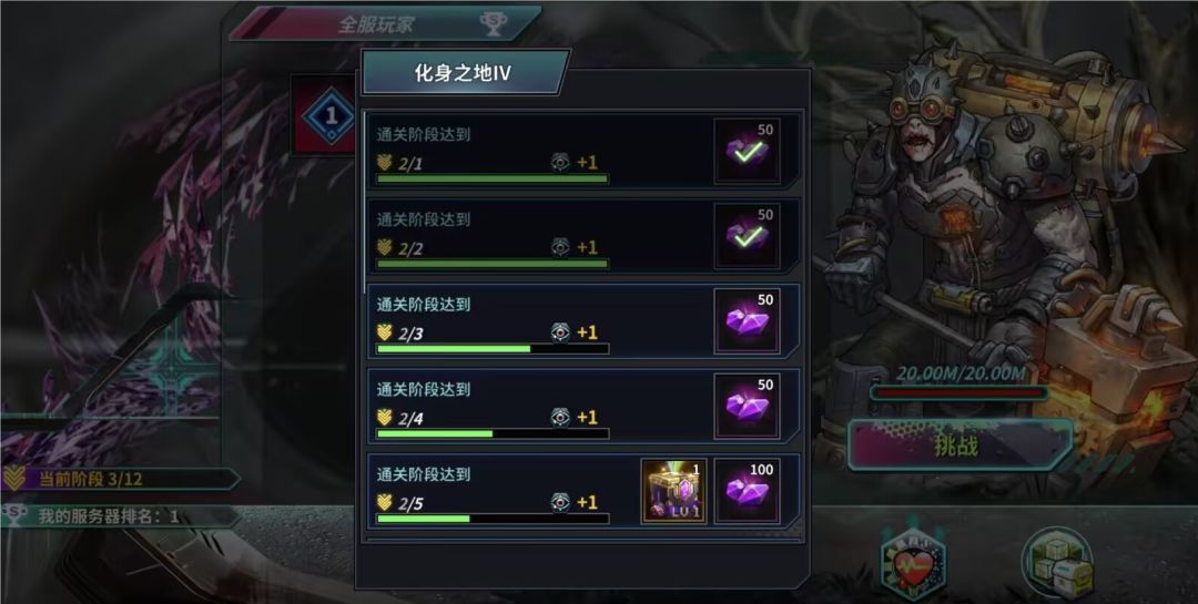 2.4.化身之地挑战为渐进式的,当当前阶段伤害达到要求即可通过该阶段进入下一阶段,可重复挑战,伤害累加