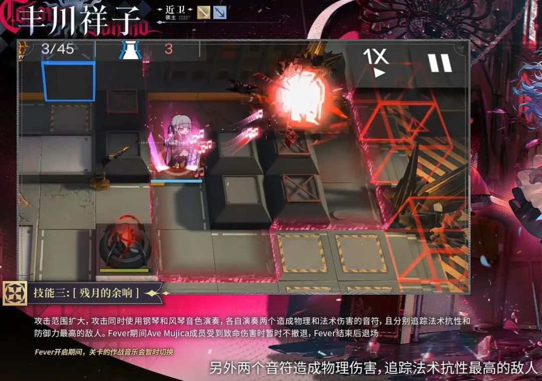Fever开启期间,丰川祥子会持续释放该技能。看演示,一窜音符能把小怪打2/3血。小怪3800血。70法抗。假设无视20法抗大概5千法伤。感觉可以挂机,只不过只能等她充能至最大层数时自动释放。