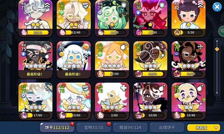 图片上没有的都是练度比较低的(补一个75级超2的花小龙💦)
