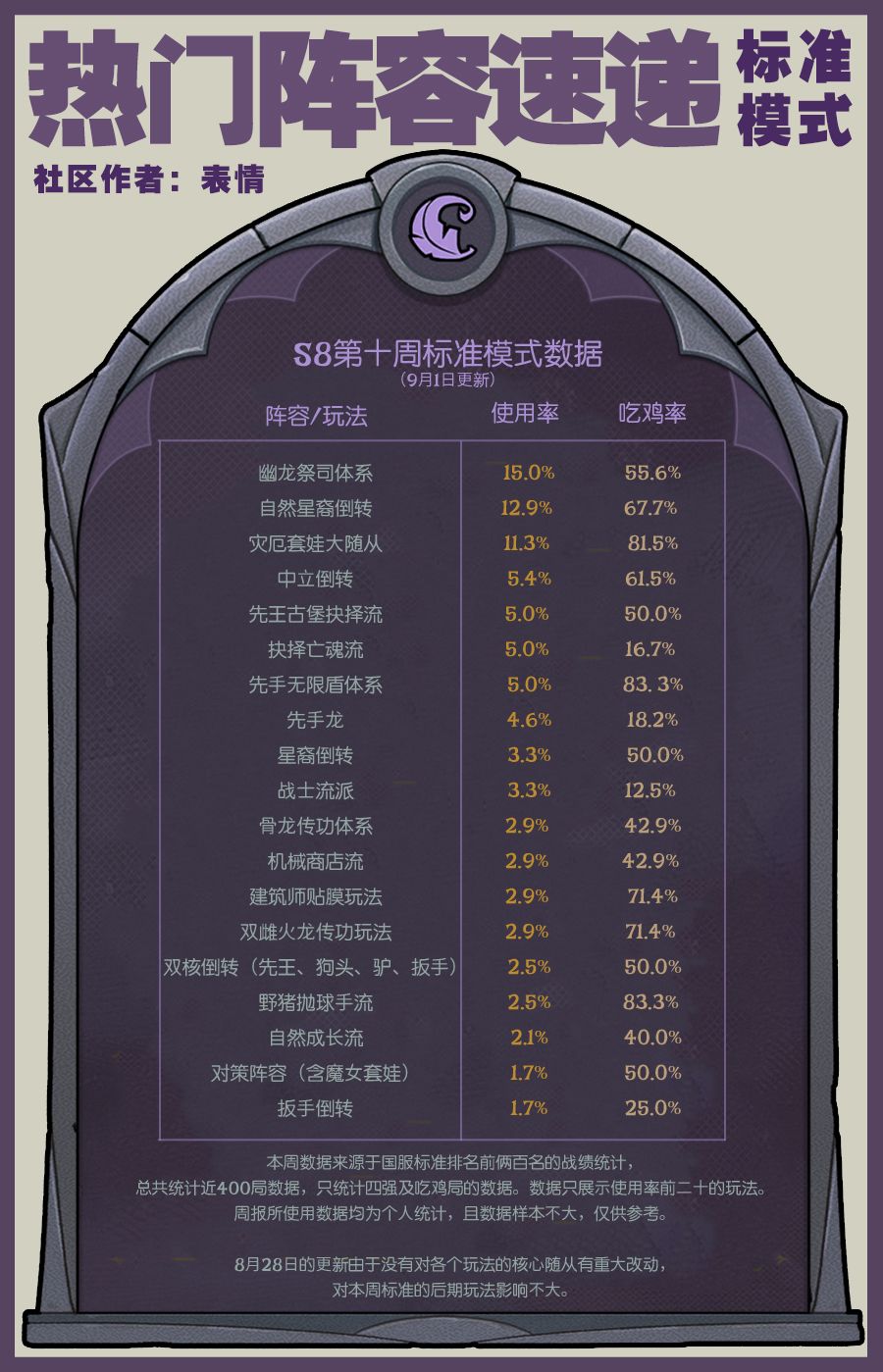 你是否还在天梯里反复摩擦却总离吃鸡差一口气?小红帽拍了拍你,并递来一份S8赛季第十周的「标准模式」及「镜极阁楼」阵容数据!