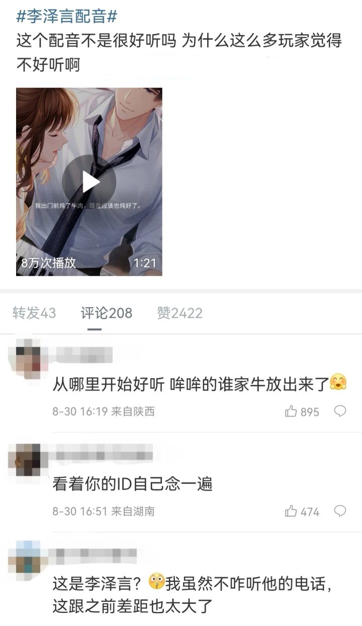 · 支持派:抽奖庆祝"老公换新嗓",要求《光与夜之恋》同步更换吴磊(其配音的查理苏)