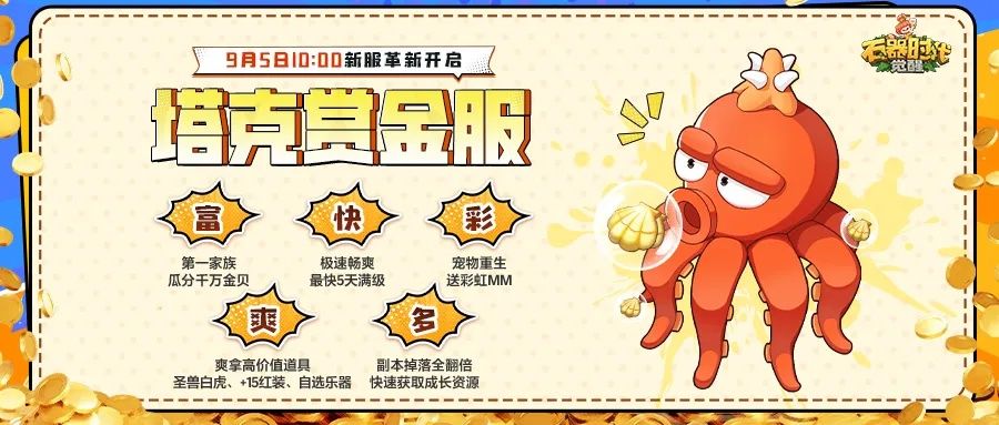 【塔克赏金服】专服将于9月5日10:00全新起航!以下内容均为【塔克赏金服】及后续新服专属特权: