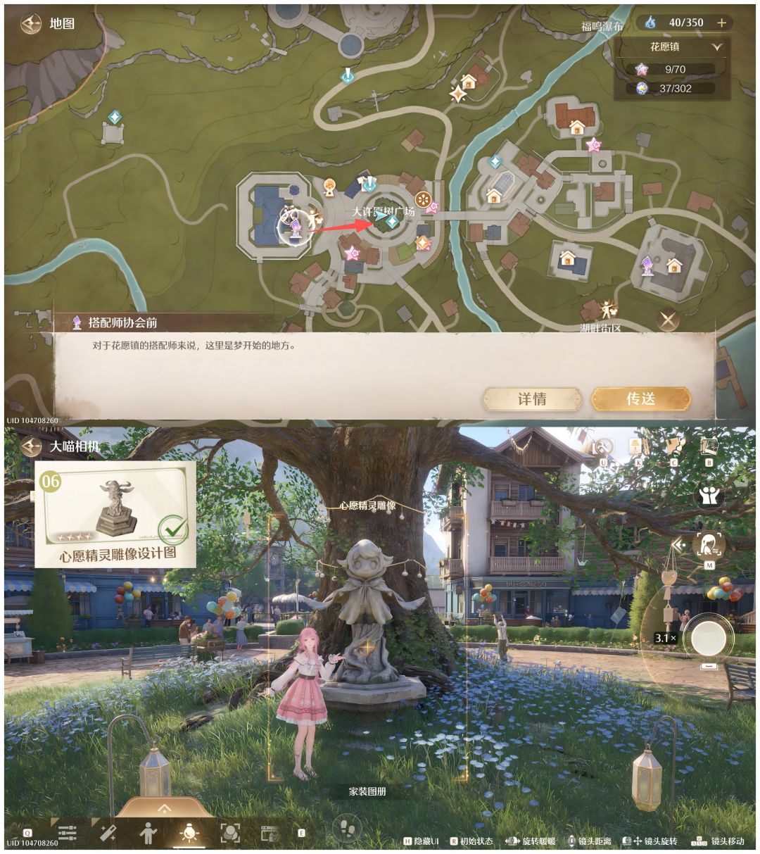 6️⃣心愿精灵雕像设计图(P7):在大许愿树广场;