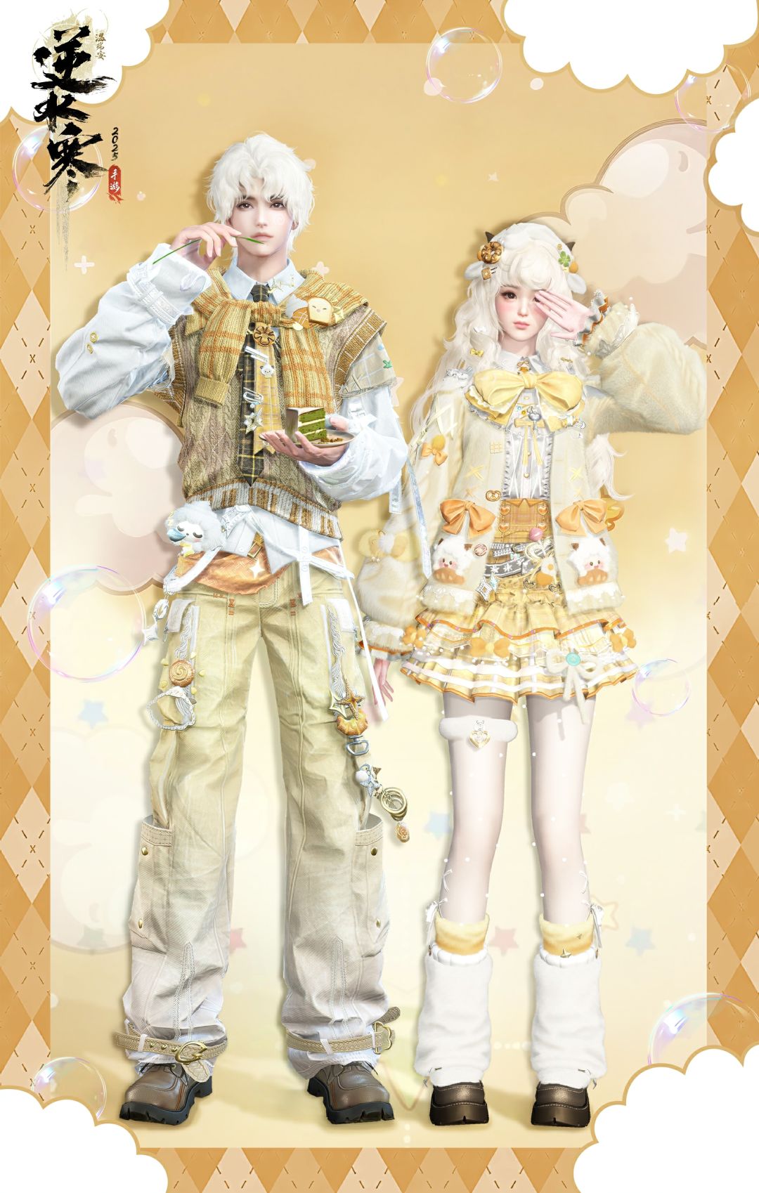 浸着杏蜜的云朵,沾在初软的草尖。9月4日(星期四)——9月30日(星期二),逆水寒×喜羊羊与灰太狼 联动第二弹、懒羊羊主题时装【糖云蜜杏】限时上线商城,直售价【1880纹玉】,支持使用半价券、代金券、限定纹玉;各位同门获取时装后可同步解锁配饰【黑糖瞳语】、【奶油雪顶】、单人动作【云茵酣梦】、妆饰【糖涡】。
