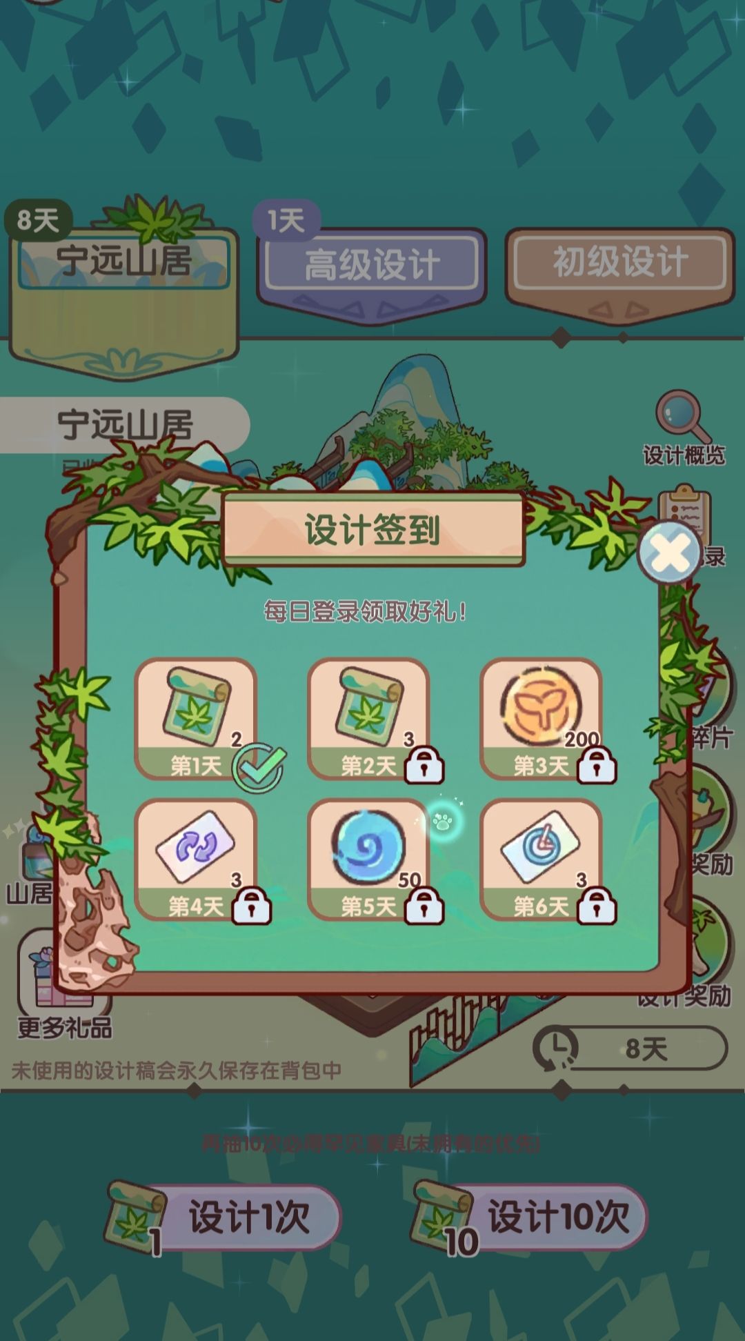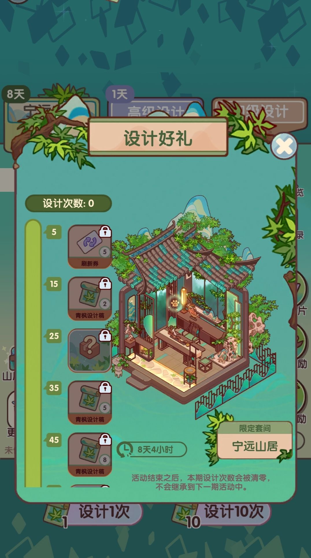 ⛰️限时活动「山居对对碰」完成相应物品匹配即可获取银星币兑换青枫设计稿、高级设计稿等丰厚奖励,累计可获得青枫设计稿*15、高级设计稿*5、顶级资料书*5、高级资料书*10、饲料包*5的奖励。