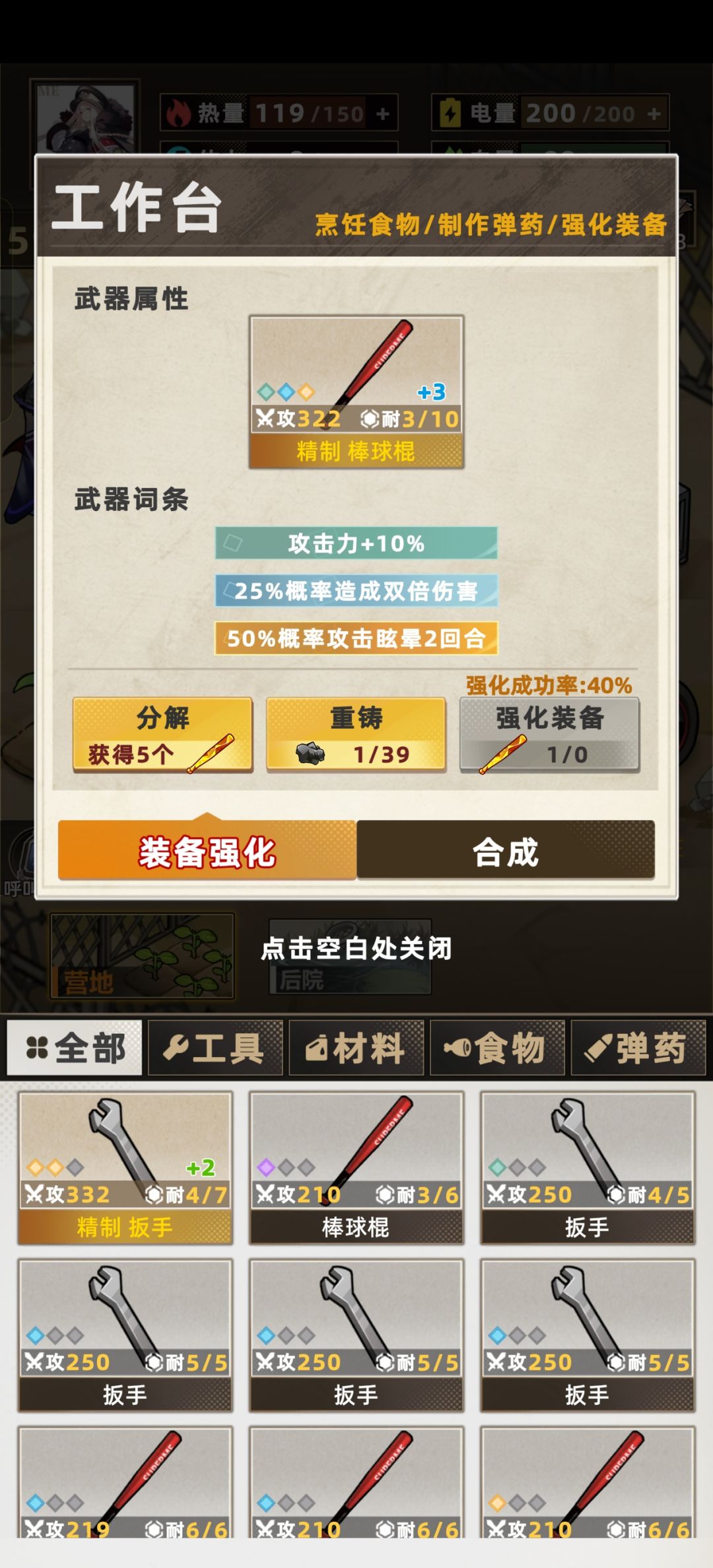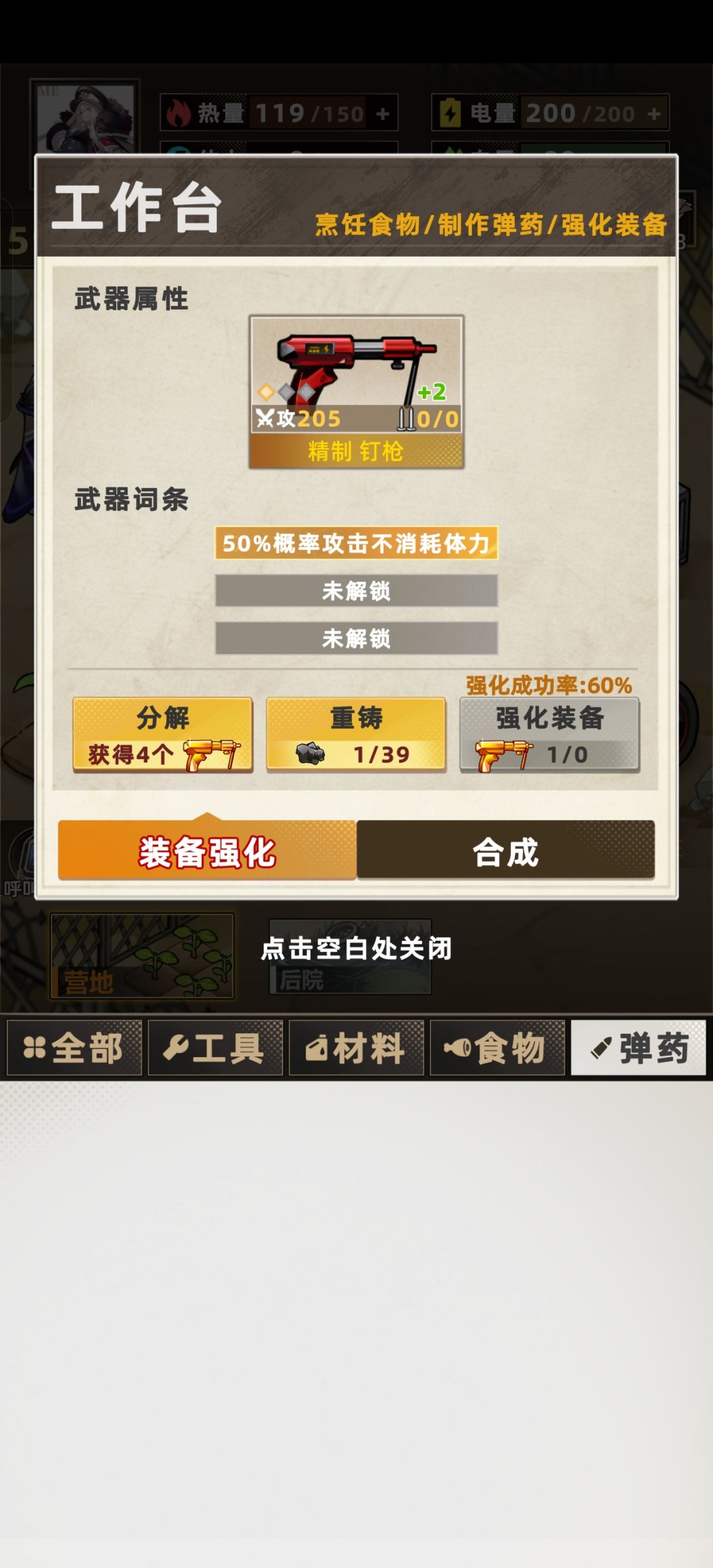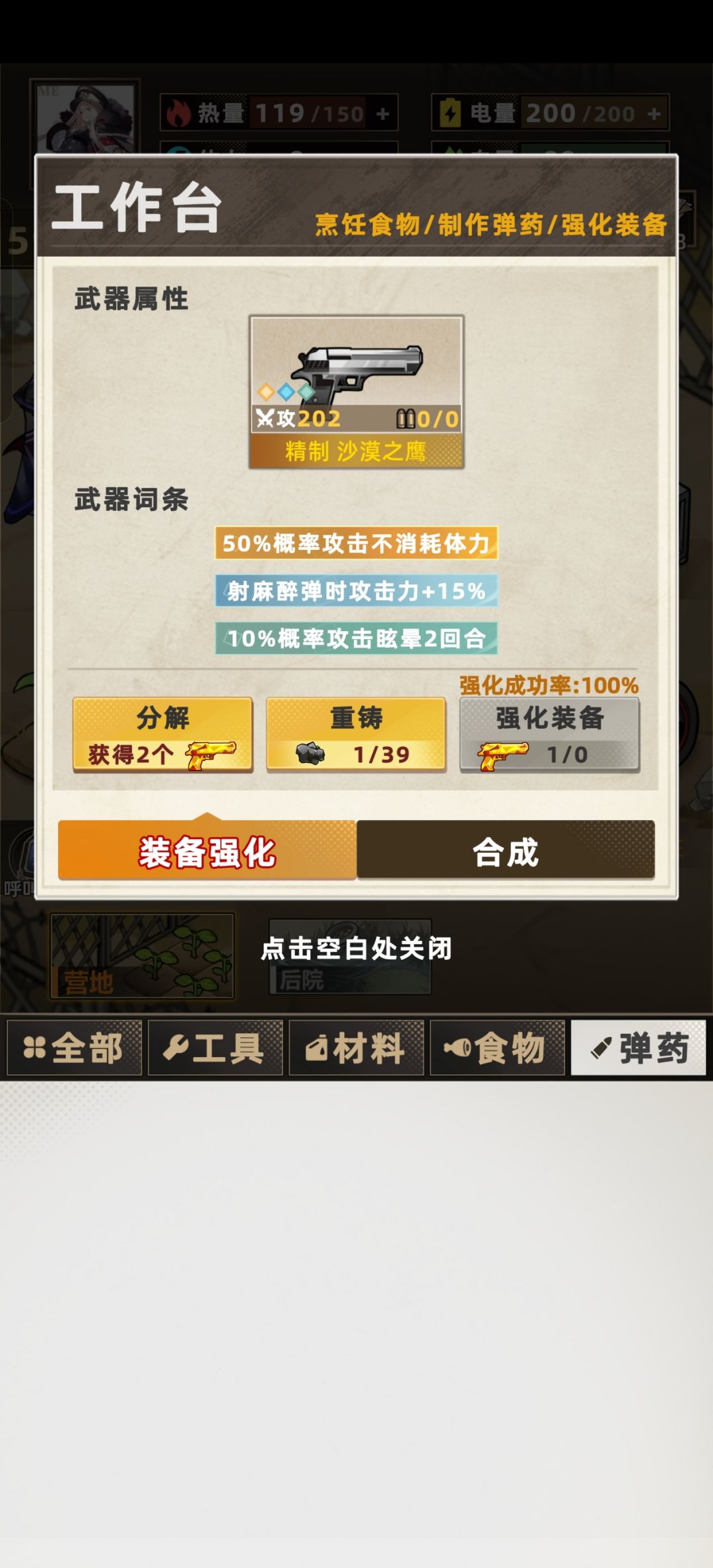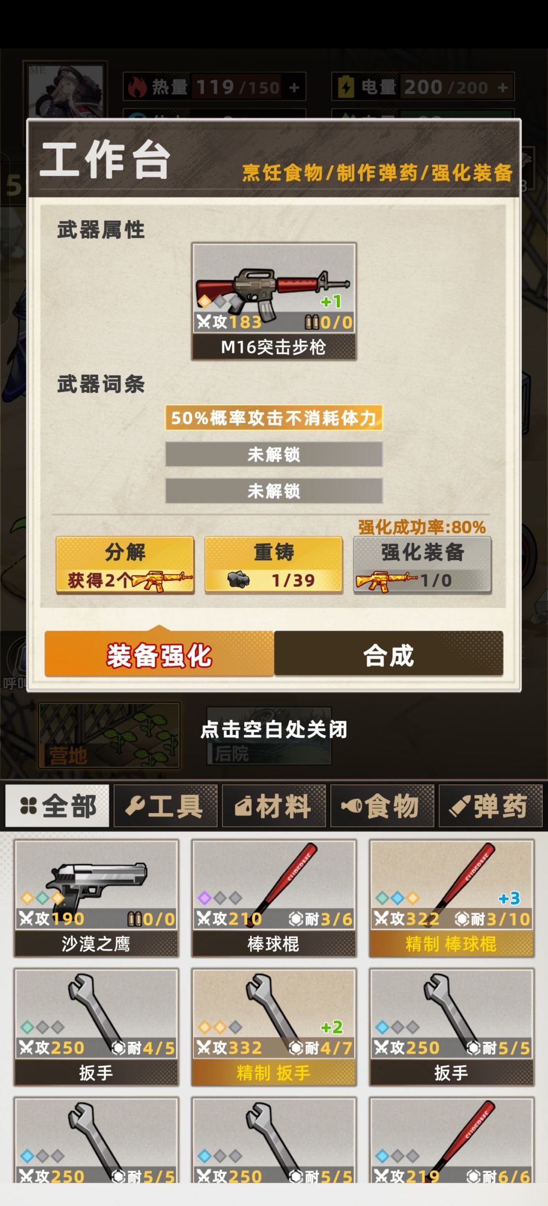 开局选了自由女神像后,前十天我就尽量搜军营,拿武器、油、废铁、狗粮,运气挺好的出了芯片和三把50%体力的武器、两把50%眩晕的武器,食物浪费的很少因为前期我搜到的就很少,前期出1、3、7瓶鱼油的鱼尽量用来炼油了。后来食物开始紧张了就不管小鱼还是小虫都吃了,反正电力够。后10天是天天就指望着尸潮宝箱和超市。