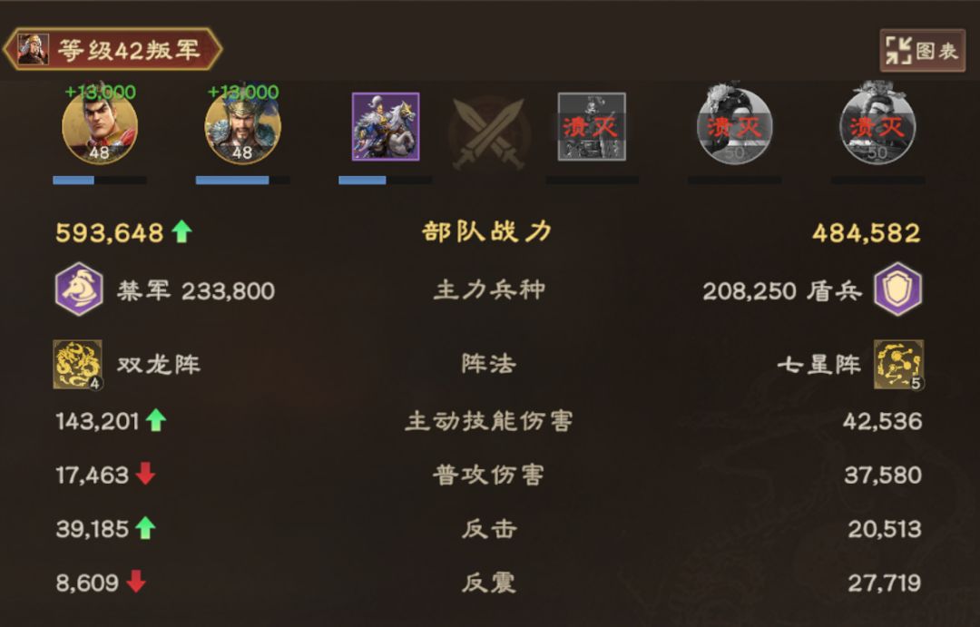 从战报中主公们可以看到,与叛军交战时,他们的技能伤害非常惊人。
