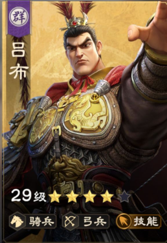 张辽的最优搭配为吕布,因此拥有吕布的主公可以考虑抽取该卡池,来组成顶配的技能体系阵容。