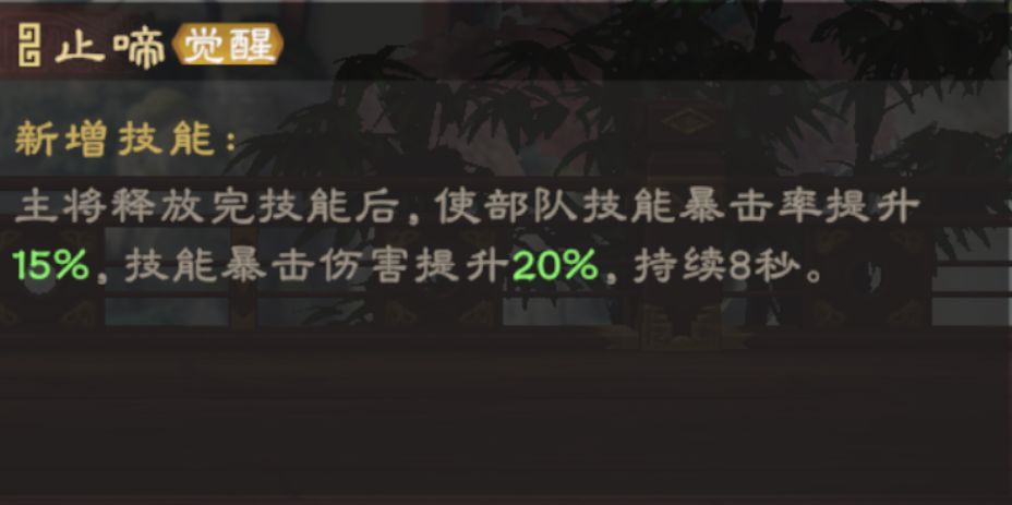该技能可以提升队伍的技能暴击率和技能暴击伤害,进一步提升全队的技能输出伤害。