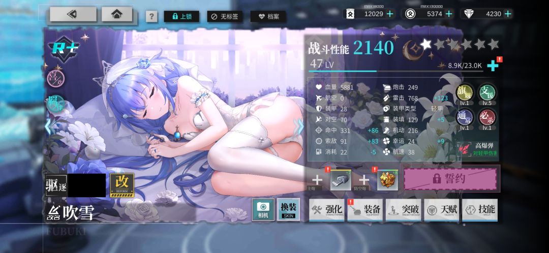 商店 →换装商店,花费1张换装券兑换吹雪「拂晓之誓」皮肤。