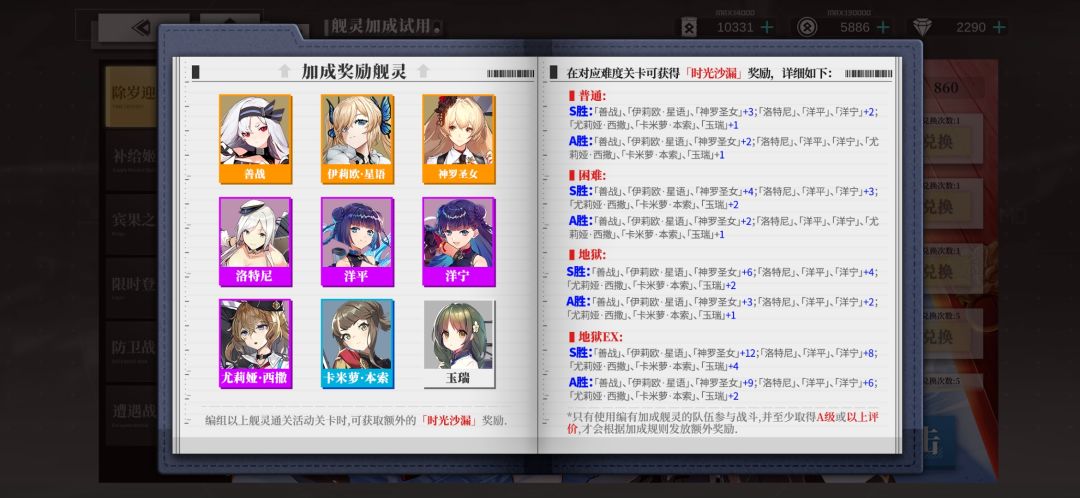 每天的三次困难5-5、三次困难10-5,千万别忘记!利用游戏的保底机制(保底轮数1000+),差不多2-3天,能获得1个主线SSR。