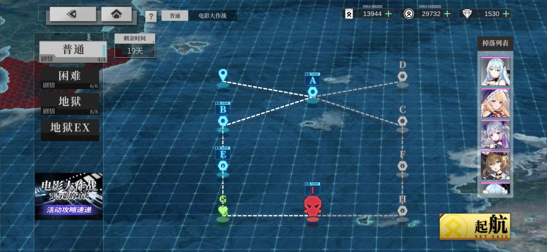 根据博士在QQ频道发的下期活动预告图,分析路线,敲定备战舰灵,并在本次活动地狱练级开槽。