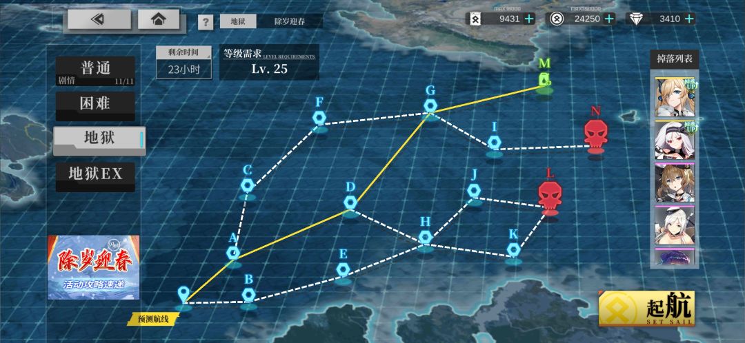我们再来看地狱EX关卡路线图: