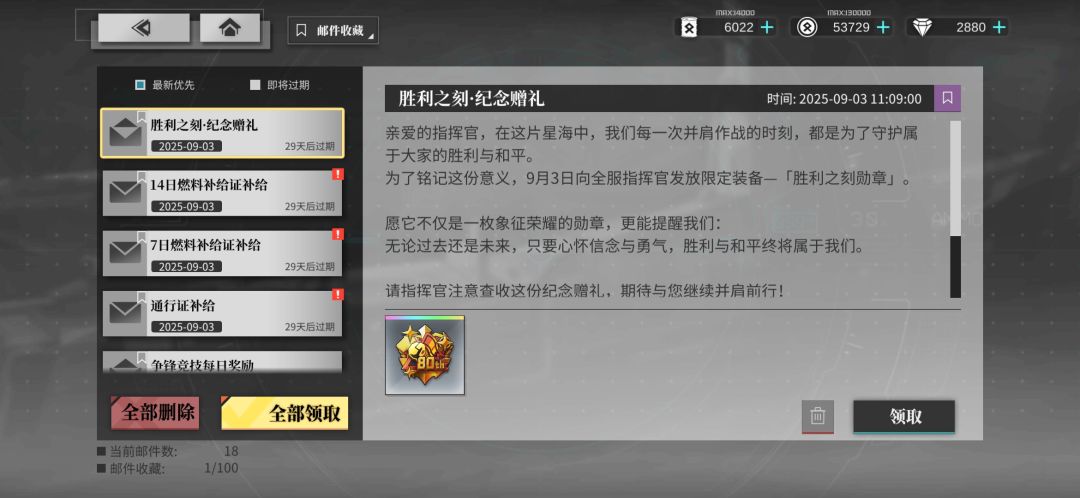 9/3纪念!大家记得把这封邮件加收藏。「点击右上角紫色收藏按钮」