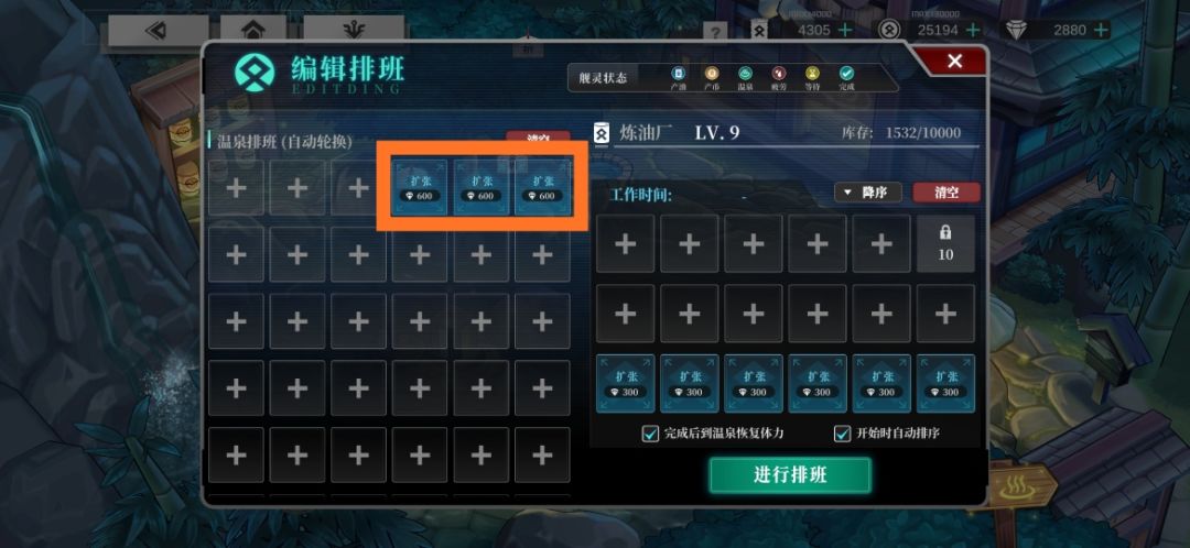 炼油厂温泉(竹)初始有3个温泉位,需要额外再花1800钻石扩建,推荐在获取时雨之后再开;便利店温泉(樱)3个温泉位不扩建。