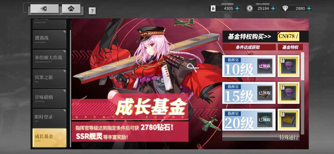 今天更新闪回活动,维护完我就上线把成长基金氪了,成长基金赠送的随机SSR舰灵券抽到了长门,指定SSR舰灵券兑换了加贺开个图鉴。