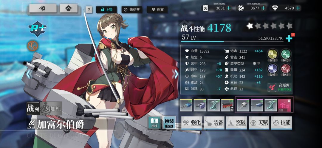 「加富尔伯爵」练级开槽编队配置: