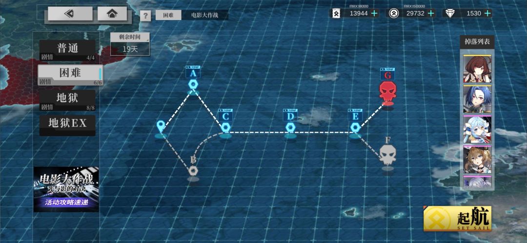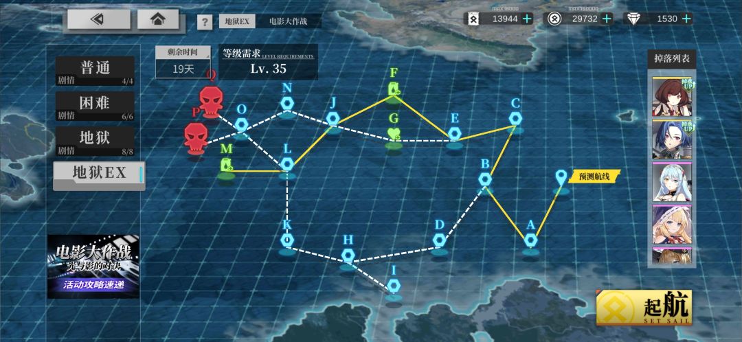 「地狱EX」练级路线 6战2油点:A→B→C→E→F→J→L→M