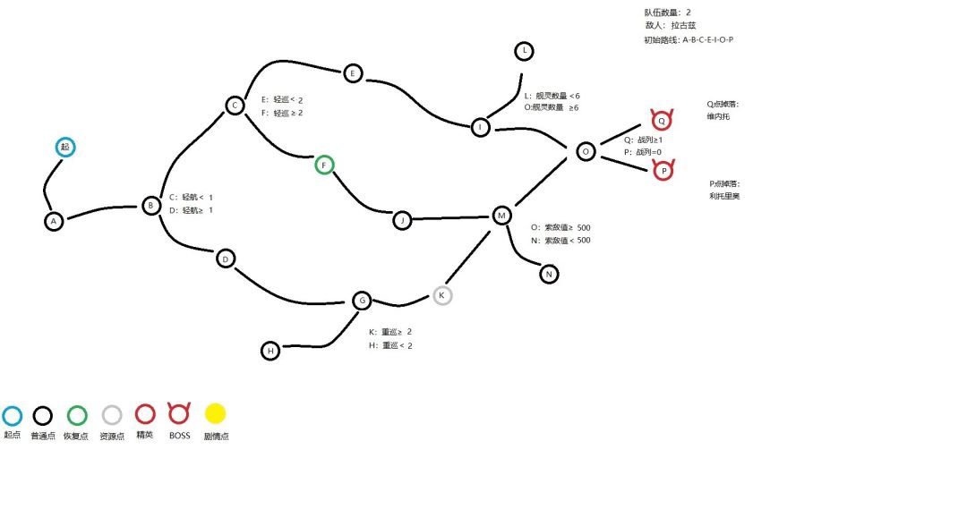 再来看带路条件:轻母≥1、重巡≥2、索敌值≥500、BOSS点分歧条件为战列≥1或战列=0。