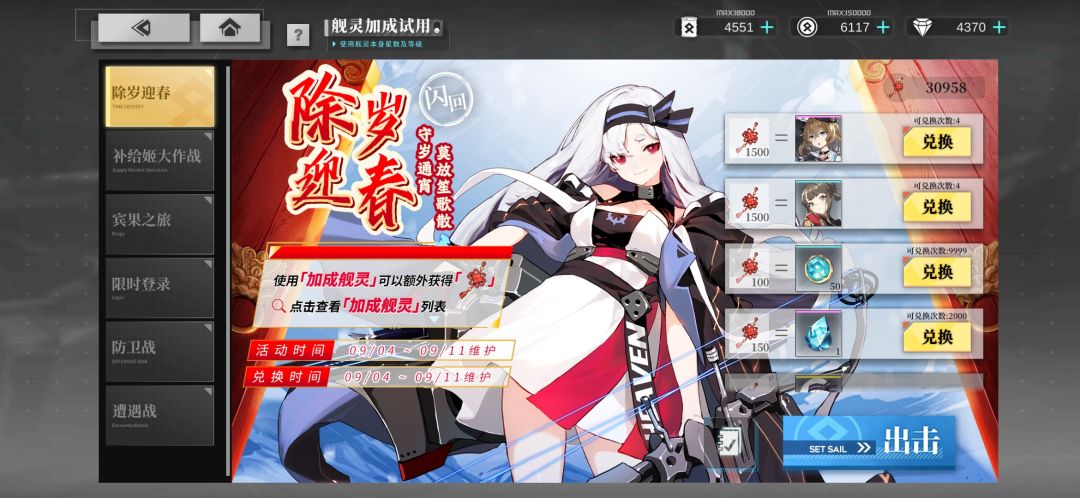 「初岁迎春 闪回」明天9/11 10点结束,记得提前把奖励点数全部兑换完。